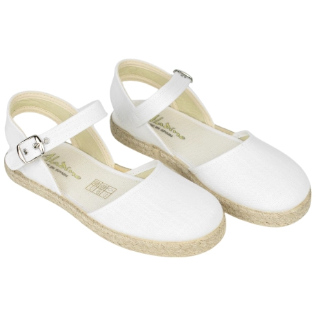 Que tus peques disfruten del verano con estilo y comodidad con nuestras Alpargata planas de mujer en color Beis con Pulsera. Fabricadas en España con esparto de alta calidad y tela resistente en un elegante color beige, estas zapatillas son ideales para los días soleados de verano.