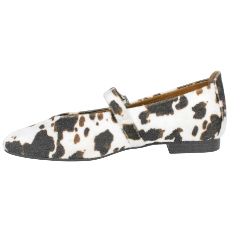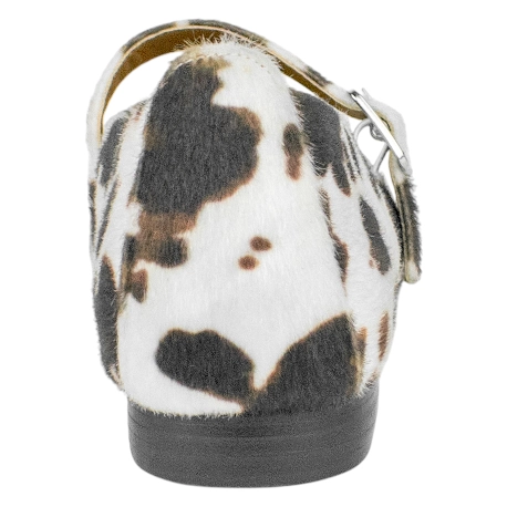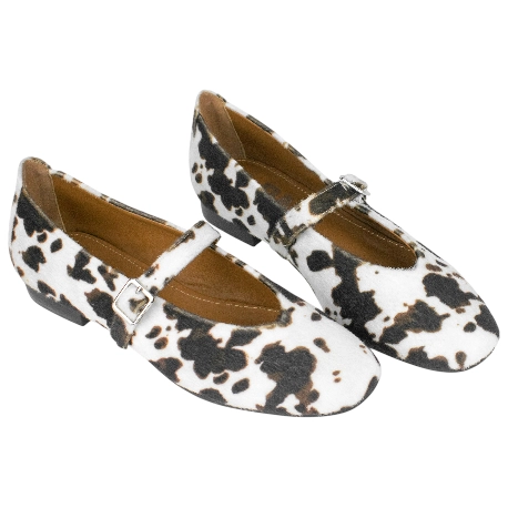 Bailarina Mary Jane con cierre de hebilla, confeccionada con tela estampada de vaca, look en tendencia.