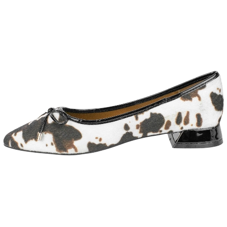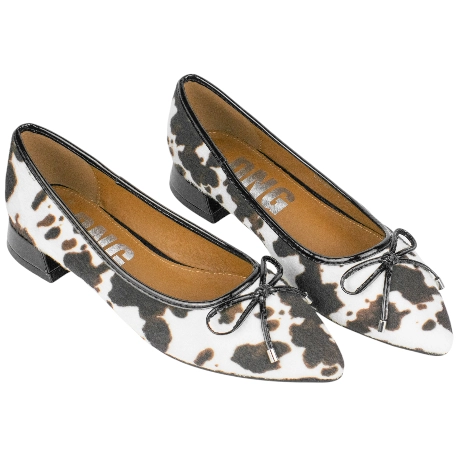 Bailarinas para mujer de tacón bajo de 2cm., confeccionadas con tela estampada de vaca.