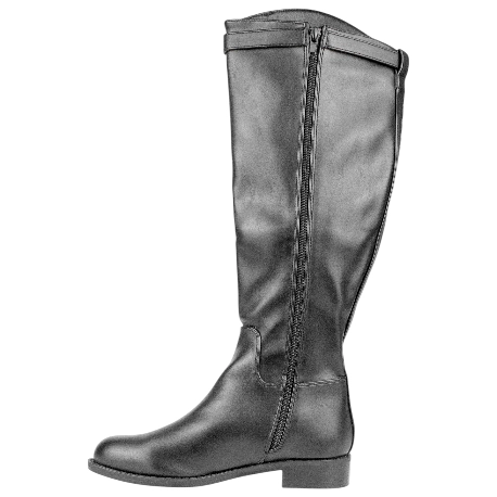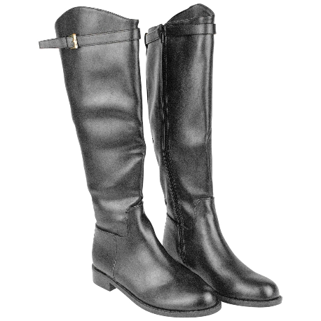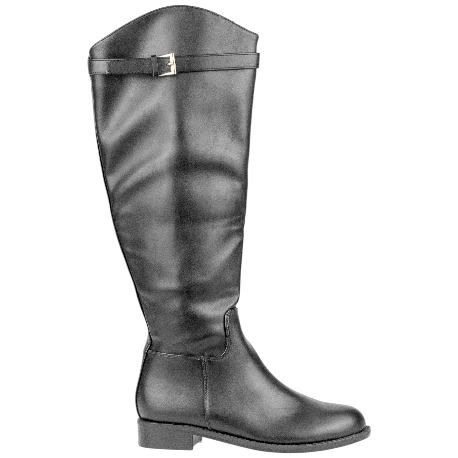 Bota negra de suela plana, hecha con materiales de buena calidad. Cierre con cremallera interior, hebilla dorada decorativa.