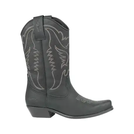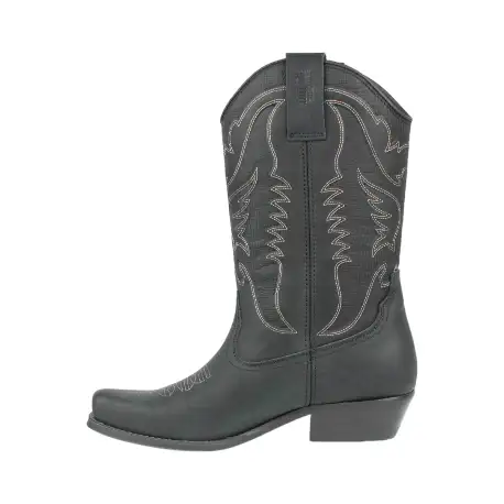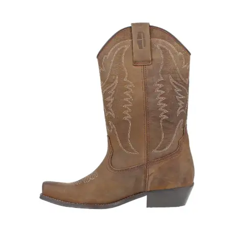 Bota campera en piel de caña alta y punta afilada. Tipo western. Cómodas.