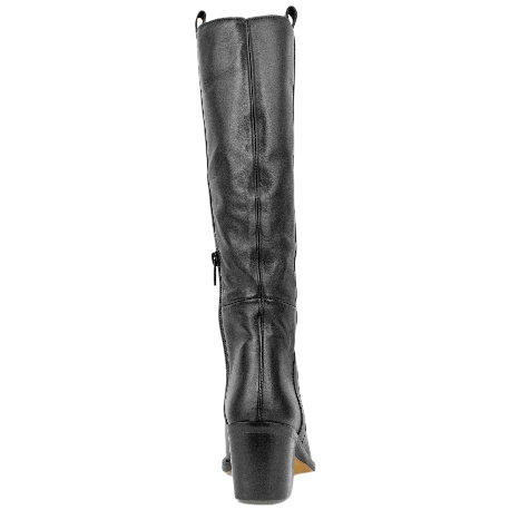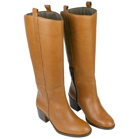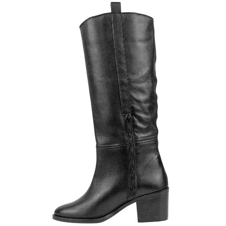 Su diseño es un estudio de la elegancia funcional. La caña alta y recta, con 35 cm de altura, estiliza la pierna, mientras que la puntera redondeada asegura la comodidad. Su tacón en bloque de 6,5 cm es lo que las expertas en moda denominan un "tacón sensato": la altura ideal para realzar la figura y mantener una comodidad absoluta durante horas. La cremallera lateral y los tiradores superiores garantizan un calce fácil, convirtiendo a estas botas de piel para mujer en la fusión perfecta de diseño y practicidad.