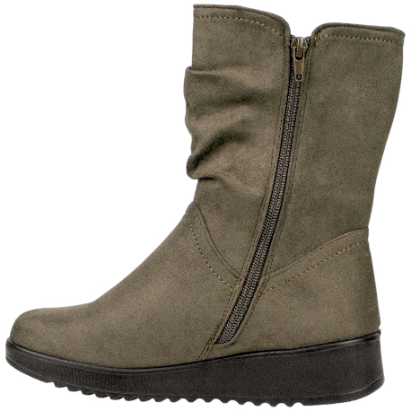 Cierre doble cremallera. Forro de pelo corto muy suave. Punta redonda.