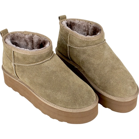 Estilo y comodidad definitiva con nuestras Botas Australianas Plataforma para mujer BB UP modelo 1029. Fabricadas en suave piel serraje, estas botas australianas te brindarán un toque moderno y una mega plataforma de 5.5 cm que realza tu look. Disponibles en negro y marrón, estas botas de mujer cuentan con un lujoso forro y una plantilla de pelo que mantendrán tus pies cálidos y acogedores.