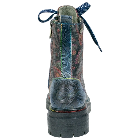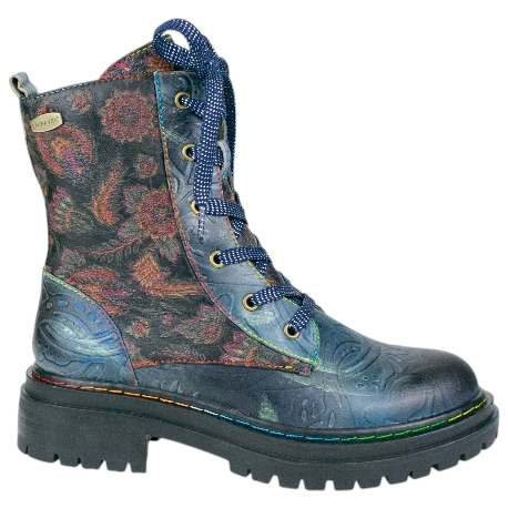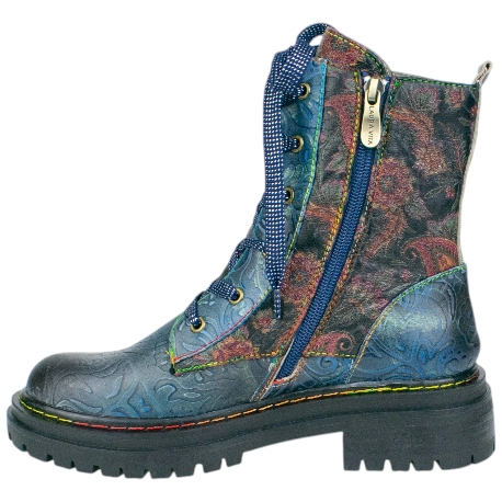 ¿Cansada de las botas aburridas y monótonas? Laura Vita rompe las reglas con una pieza que es pura expresión artística. En World Mujer, te presentamos unas botas de estilo militar que se transforman en un lienzo. Su fascinante estampado floral sobre un fondo de tonos azules, grises y rojizos, junto con sutiles relieves, convierte un clásico urbano en una declaración de intenciones. Son el calzado para la mujer que no sigue la moda, la crea.