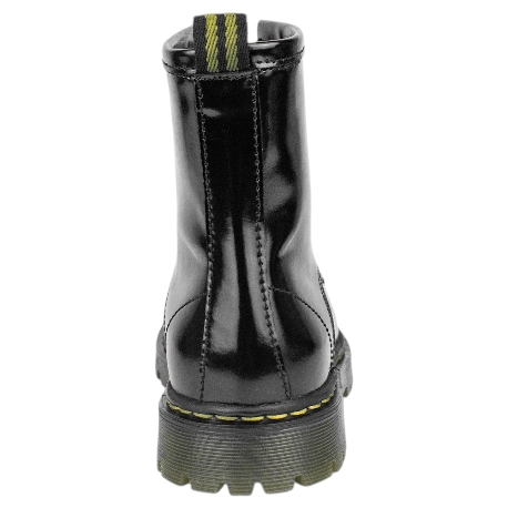 Inspiradas en el icónico estilo "combat boot", cada detalle ha sido cuidadosamente seleccionado. La robusta suela de goma dentada (o suela track) no solo proporciona un agarre excepcional, sino que está unida a la bota mediante un distintivo pespunte amarillo, un sello de autenticidad y durabilidad. El cierre de cordones redondos permite un ajuste perfecto, mientras que el tirador trasero a rayas facilita su calce. Son las botas militares de piel para mujer que transformarán por completo tus looks.
