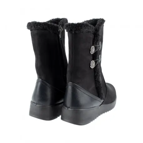 Bota de caña media con tecnología Water Repellent, que ayuda a mantener el agua fuera del zapato para mayor comodidad. Forro interior de pelo calentito, perfecto para el Invierno y plantilla de MemoryFoam, muy suave que amortigua la pisada.
