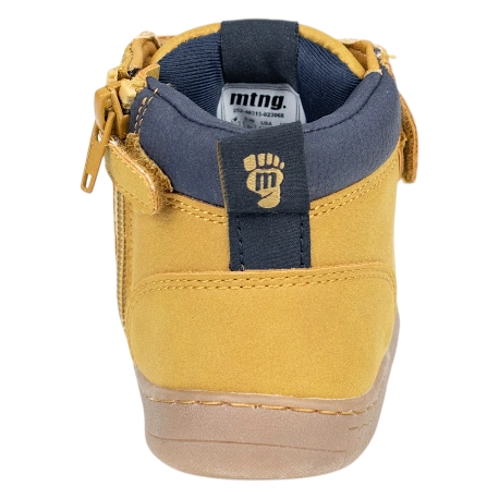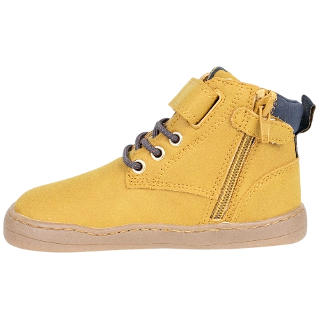 Botines respetuosos para niños y niñas, fabricados con materiales veganos certificados por INESCOP, en color camel, fácil de combinar en el día a día.