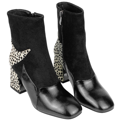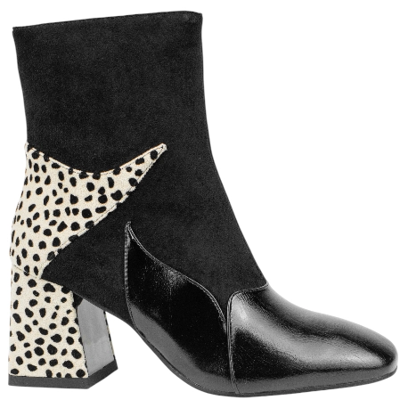 Botines elegantes fabricados con materiales y telas de buena calidad. Diseñados con antelina color negro en bloque con animal print.