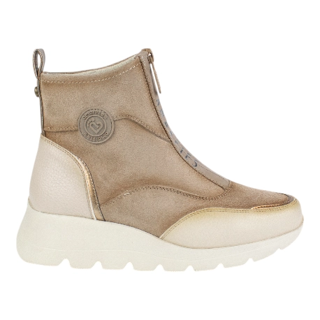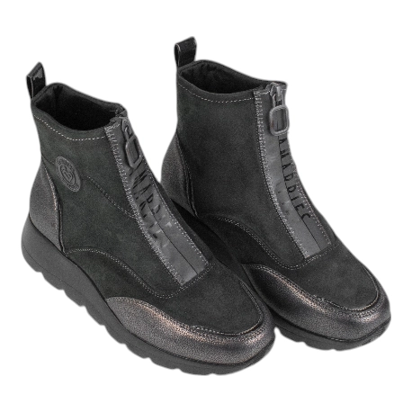 Disponibles en elegantes colores gris y beige, cuentan con una práctica cremallera central que facilita el calzado. Su plantilla confortable y forro cálido aseguran un uso prolongado sin sacrificar el confort.