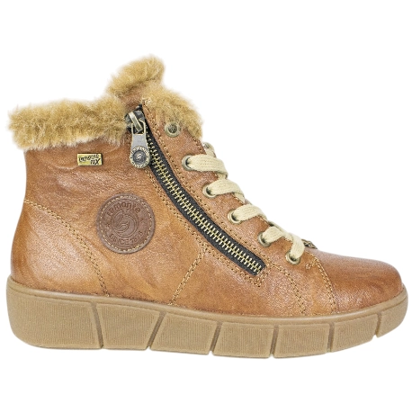 Forro térmico y collarín de pelo. Plantilla Remonte-Soft de pelo, extraíble, flexible y transpirable.