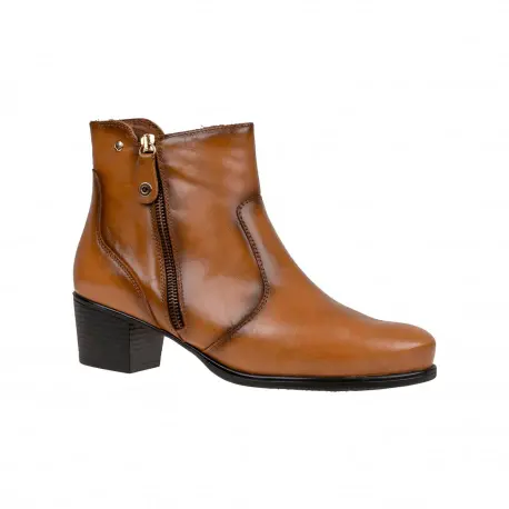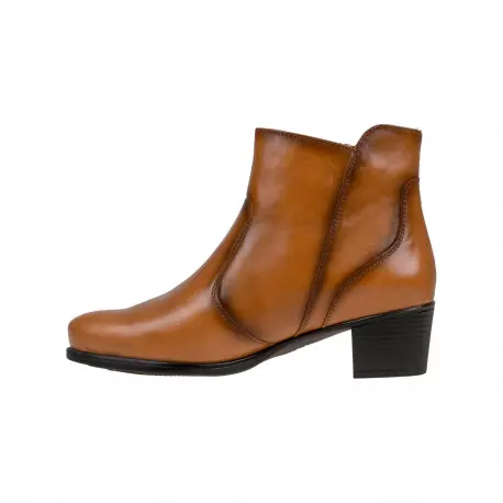 Botín flexible, fabricado en piel, con tacón cuadrado muy cómodo para el día a día.