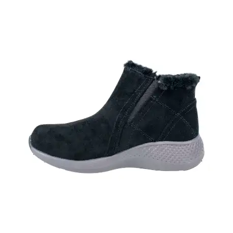 Botín fabricado en piel con membrana impermeable, que protege del frío y de la lluvia. Son muy ligeras y cómodas, con plantilla extraíble y suela antideslizante. Horma cómoda y cierre con cremallera.