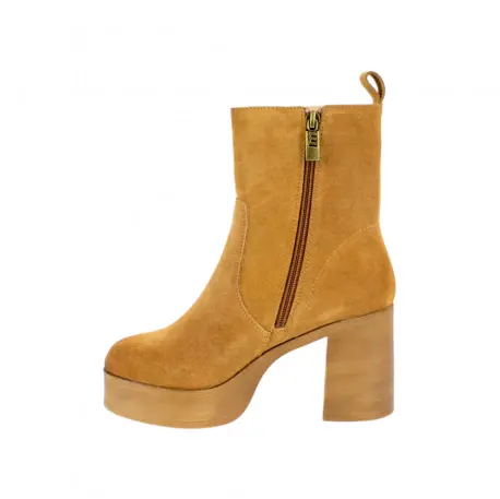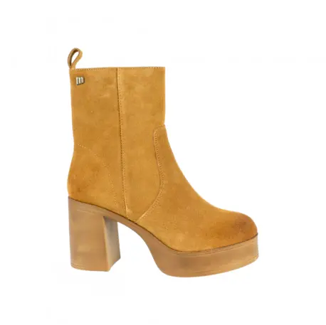 Mustang Botines Marrones Tacon Ancho y Plataforma en Piel serraje