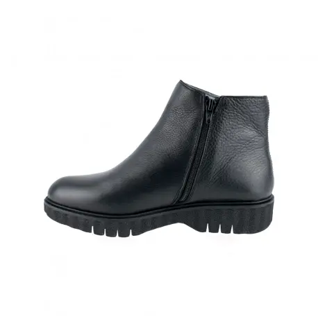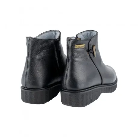 Botín casual en color negro, fabricado en piel de primera calidad. Cierre de cremallera interior. Forro interior con membrana impermeable KAM-XTREME, que protegerá tus pies tanto de la lluvia como del frío. Plantilla extraíble muy cómoda que se adapta al pie. Suela de goma con tacón ancho de 3,5 centímetros.