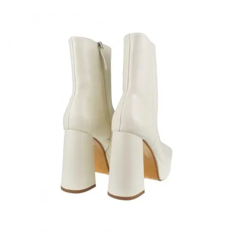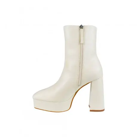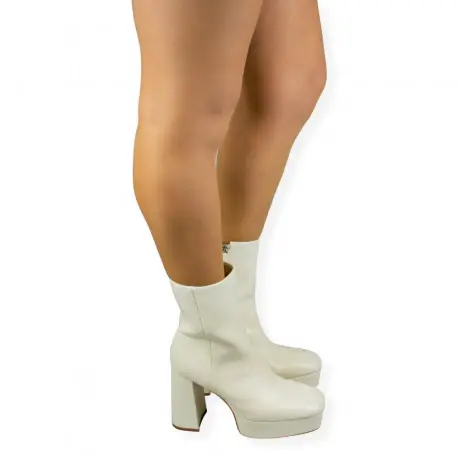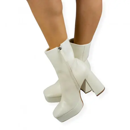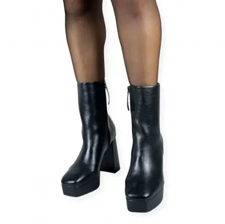 Botín con tacón cuadrado alto de 11 centímetros y plataforma ancha de 3 centímetros.