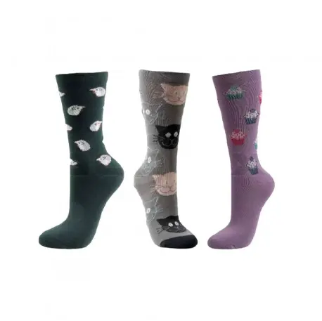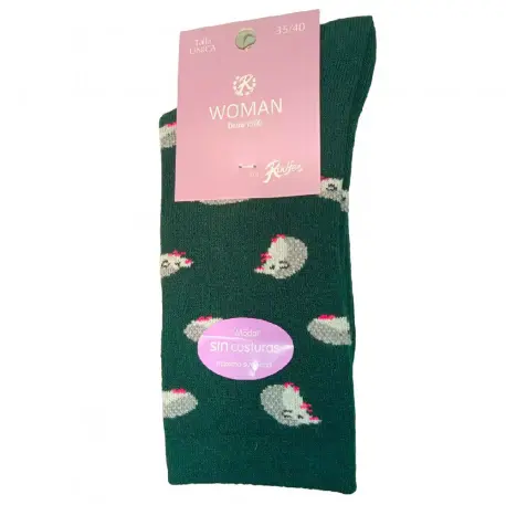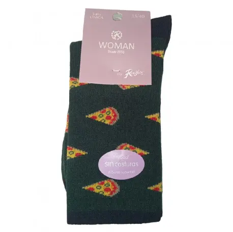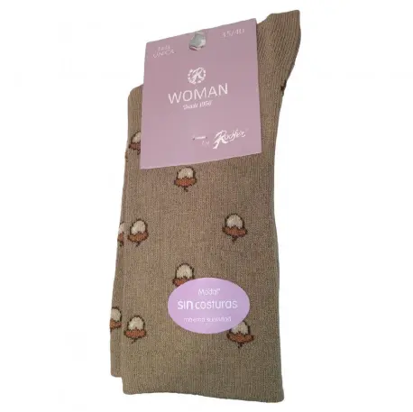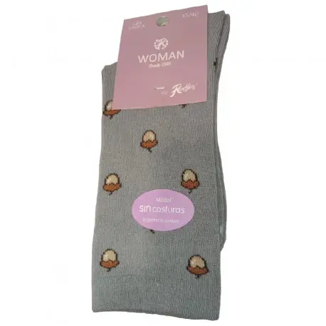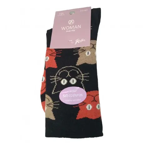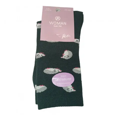 Calcetín de mujer con estampados divertidos, fabricado en modal sin costuras, para que sea más cómodo. Tacto suave y puño anti presión remallado a mano.