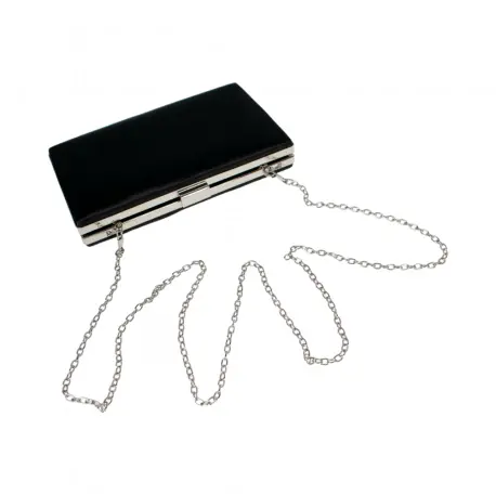 El cerrojo metálico en la parte superior del bolso garantiza que el contenido se mantenga seguro en su interior durante toda la noche, mientras que el acabado en plata aporta un toque de brillo y glamour. El asa metálica es una excelente opción para llevar el bolso en la mano o en el antebrazo, lo que le da una elegancia clásica.