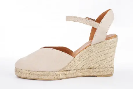Zapatillas con cuña de esparto de siete cuerdas, fabricadas enteramente en piel natural de muy buena calidad. Con una altura de 9 centímetros estas cuña de esparto resultan muy cómoda gracias a la plataforma y su composición en esparto natural. Corte en V para mejorar el ancho y dar un toque más elegante. Cierre con pulsera al tobillo para un ajuste personalizado.