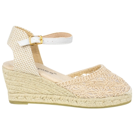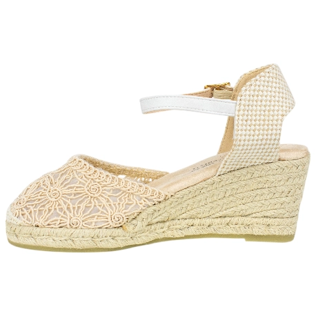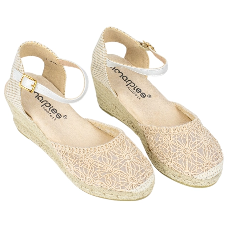 Alpargatas Beige Mujer Amarpies: Cuña Media Bordada con Plataforma