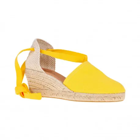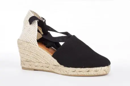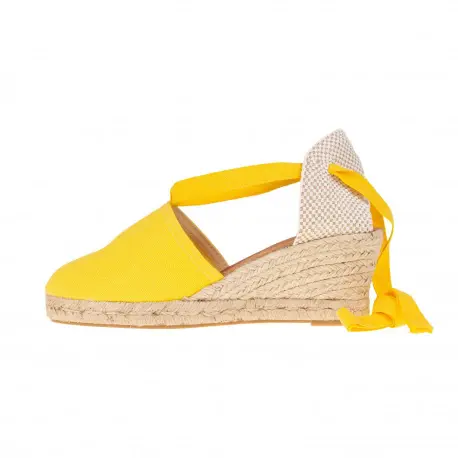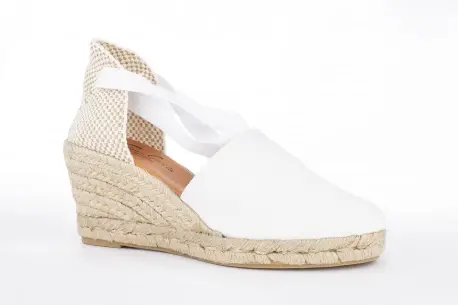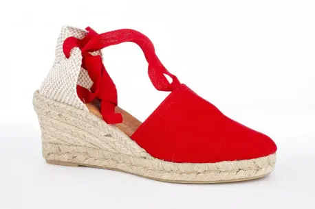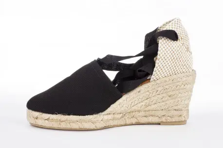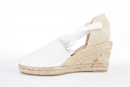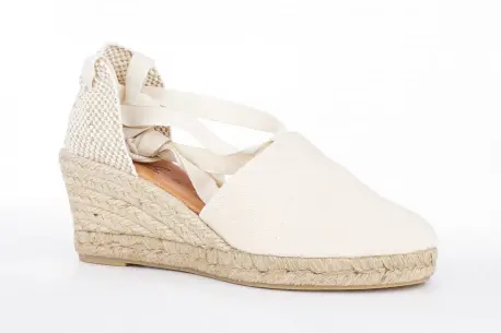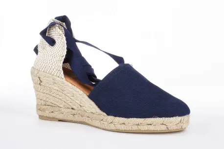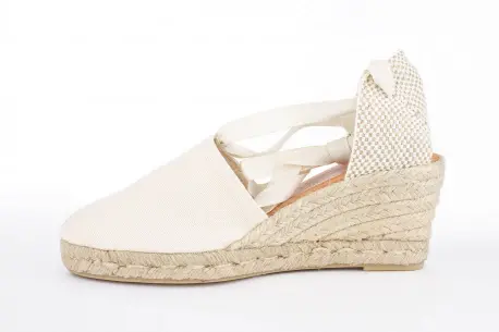 Cuña de esparto de cinco cuerdas. Con una altura de 7 cm esta cuña de esparto resulta muy cómoda gracias a la plataforma y su composición en esparto natural. Hecha en tela muy fresca con cintas que atan por la pierna, un estilo precioso para el verano.
