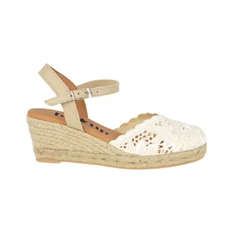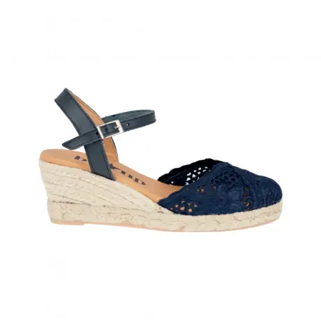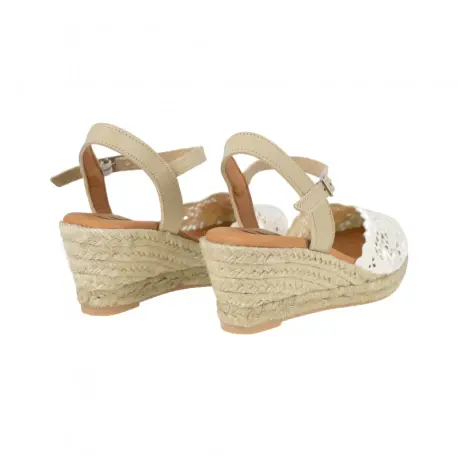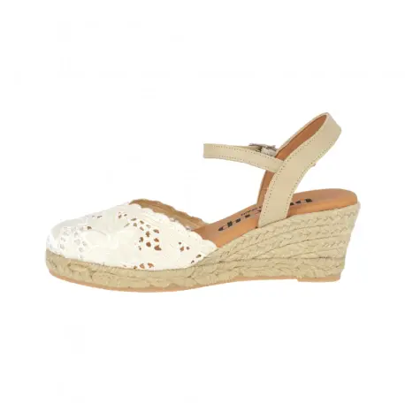 Estas cuñas de esparto son el complemento perfecto para tus looks de primavera y verano. Confeccionadas en encaje con un delicado motivo floral, tienen un cierre de pulsera que se ajusta cómodamente alrededor del tobillo. Su plantilla efecto gel te proporcionará una pisada suave y agradable, mientras que su tacón de 6 centímetros te dará un poco de altura sin sacrificar la comodidad.