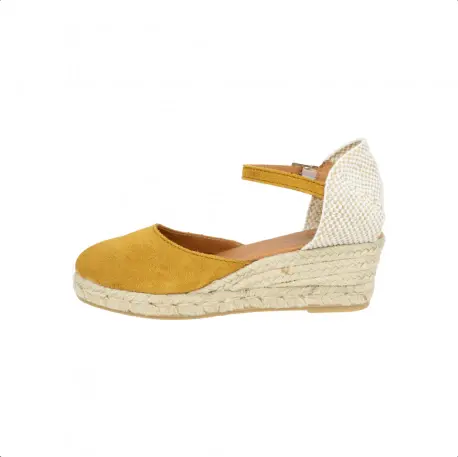 Cuña de esparto de tres cuerdas, fabricadas enteramente en pie natural. Con una altura de 5 centímetros esta cuña de esparto resulta muy cómoda gracias a la plataforma y fresca gracias a su composición en esparto natural. ¡Perfectas tanto para los estilos más casuales y elegantes!