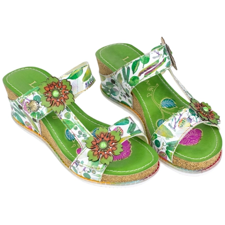 Sandalia de Cuña Laura Vita Bonito 22 – Estilo Floral y Máximo Confort