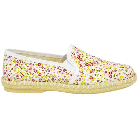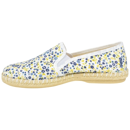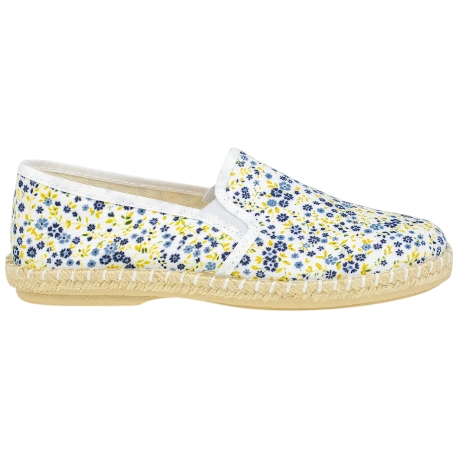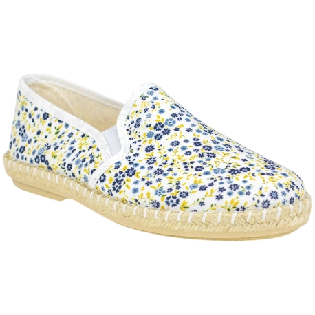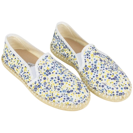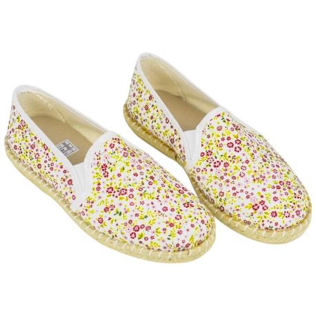 Zapatos casuales y frescos sin cordones, fabricados en tela estampada de flores. Plantilla extraíble fina y suela de esparto y goma antideslizante.