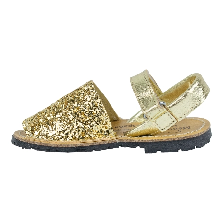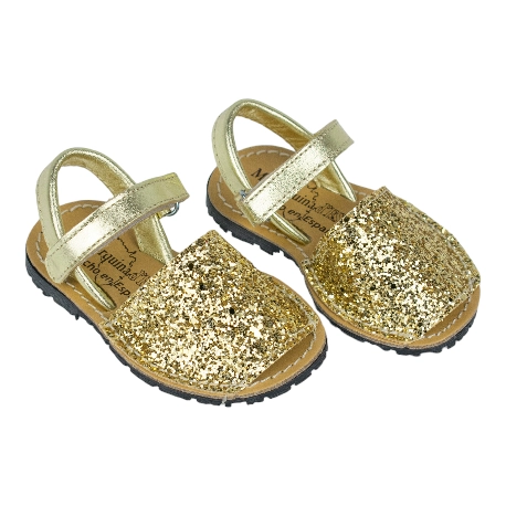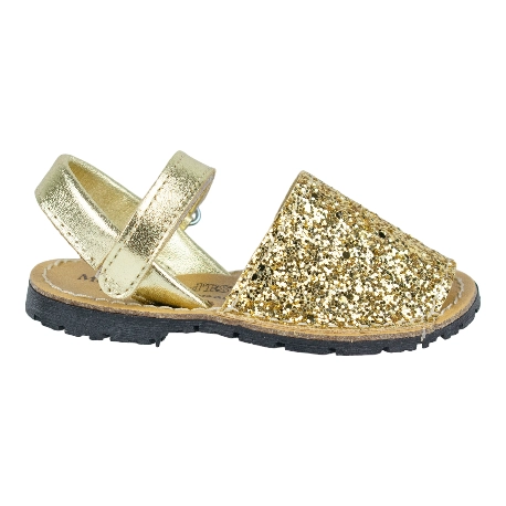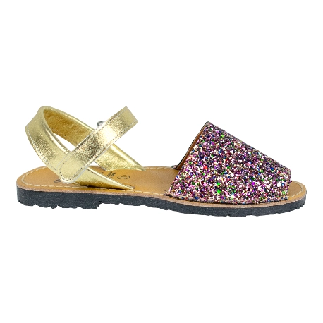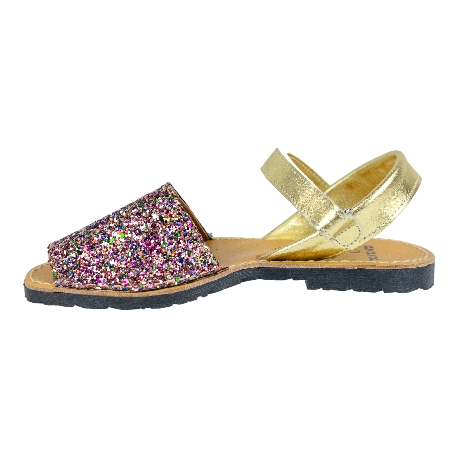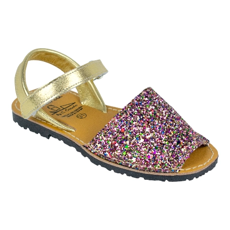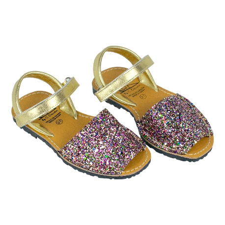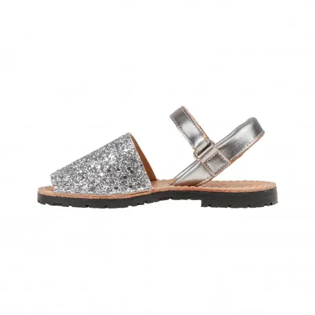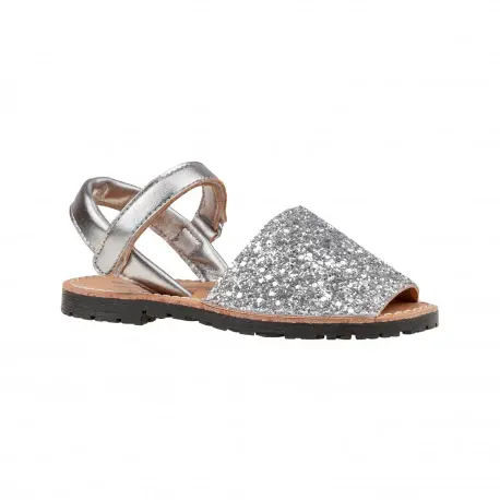 Sandalias de piel estilo menorquinas de la talla 20 a la 34, disponible en color brillante plata, multicolor y dorado.