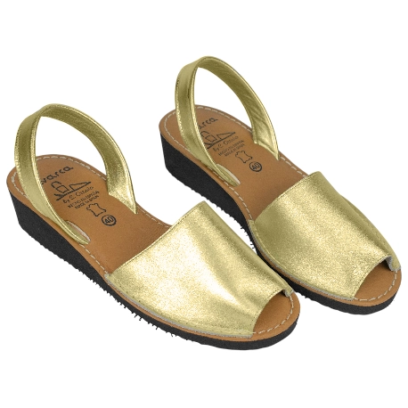 Menorquinas de Piel Doradas con Cuña – Avarca 3190AV