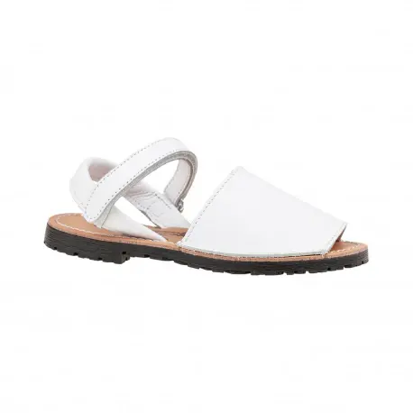 Sandalias de piel estilo menorquinas de la talla 20 a la 34, disponible en color blanco, rojo, azul marino y rosa.