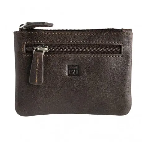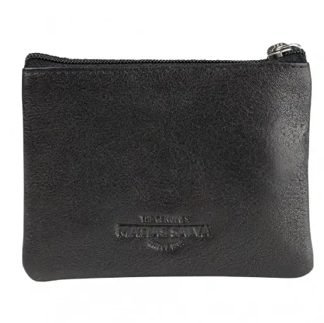 Monedero hecho en piel natural color negro. Cierre principal y exterior de cremallera. Tamaño pequeño.