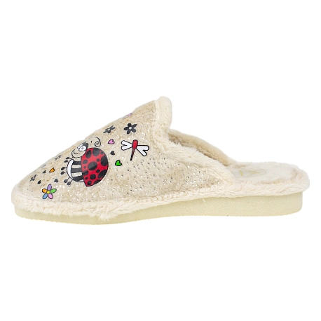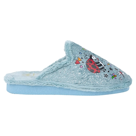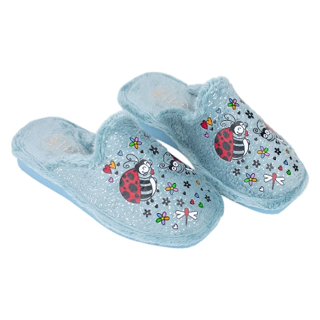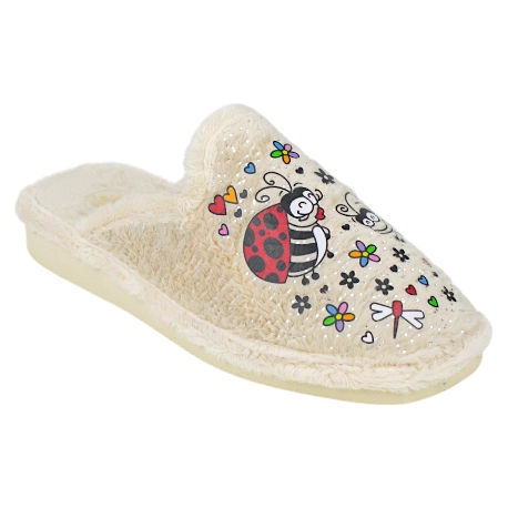 Zapatillas abiertas de estar por casa con bonito estampado de mariquitas, fabricadas con telas suaves de buena calidad y forro cálido perfecto para los días fríos.