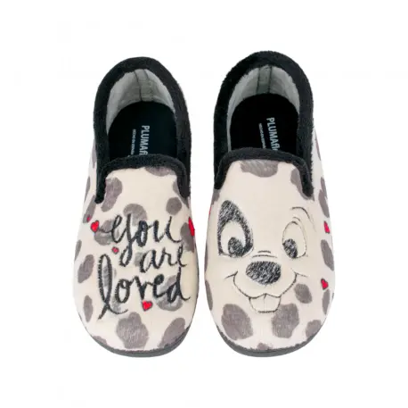 Descubre la comodidad y el estilo de las zapatillas de estar por casa Plumaflex Modelo 12282 con un encantador estampado Dálmata, perfectas para el invierno.
