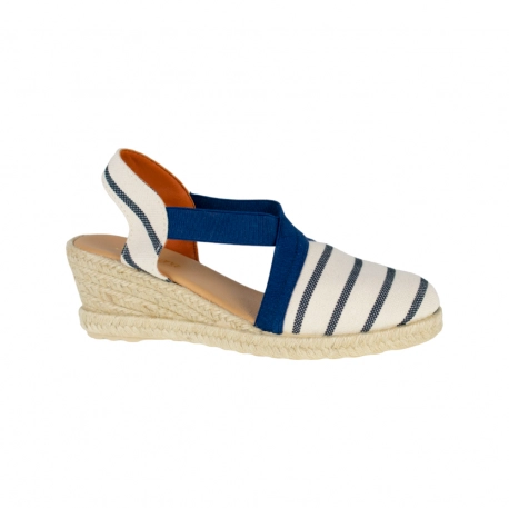 Estas zapatillas cuentan con una cuña de esparto de 6cm, un material tradicional y ecológico que evoca el espíritu mediterráneo. Hechas de fibras naturales, lo que las convierte en una opción sostenible y respetuosa con el medio ambiente. Plantilla acolchada efecto piel; El cierre de banda elástica garantiza un ajuste seguro y fácil de poner y quitar, adaptándose a la forma de tu pie y brindándote una sensación de libertad y confort durante todo el día. Suela de caucho antideslizante. Calza normal.
