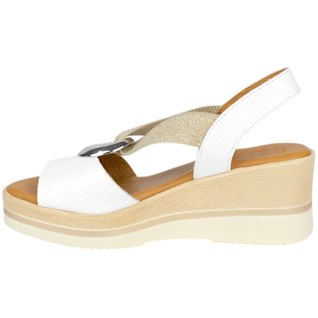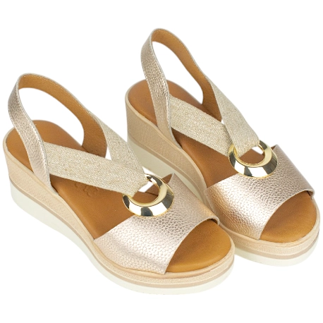 Las sadailias con cuñas perfectas si buscas comodidad y estilo en una misma sandalia. Fabricadas enteramente en piel de alta calidad, su diseño elegante reluce con la pieza metálica central que sujeta sus cómodos elásticos, para que te olvides de atar y desatar.