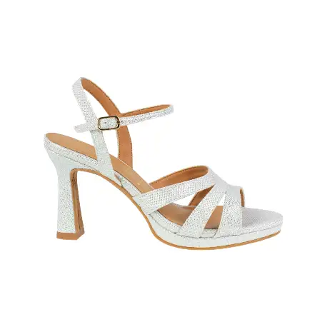 Descubre las nuevas sandalias de tacón de 9 cm, en color blanco, diseñadas por Daniela Vega. El modelo 2431 presenta un elegante diseño de tiras que envuelven el pie con gracia.