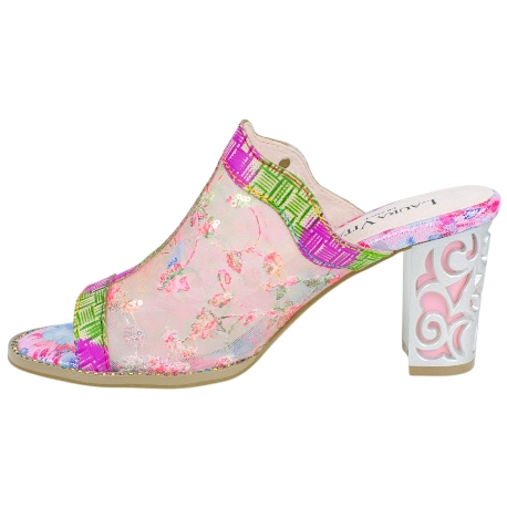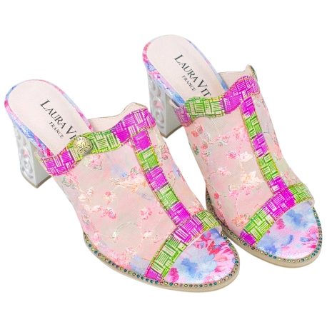 Déjate sorprender por el encanto único de las sandalias Laura Vita Ledao 07, un modelo que combina arte, feminidad y confort. Están fabricadas en piel estampada y rejilla bordada con motivos florales, creando un efecto visual delicado y sofisticado. Su diseño tipo mule aporta un toque moderno y elegante, ideal para ocasiones especiales o para destacar en tu día a día.