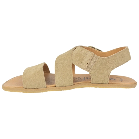 El confort es primordial en estas sandalias mujer barefoot. La plantilla ergonómica de gel, también sin inclinación, se amolda a tu pie ofreciendo un confort total y una amortiguación suave justo donde la necesitas, sin interferir con la propiocepción. Las tiras cruzadas de suave piel serraje sujetan el pie con delicadeza, sin oprimir, mientras que la hebilla dorada ajustable asegura un cierre perfecto y un toque de elegancia. Su horma ancha respeta el espacio natural de tus dedos, permitiéndoles expandirse y moverse con libertad, un principio fundamental de las auténticas sandalias barefoot mujer.