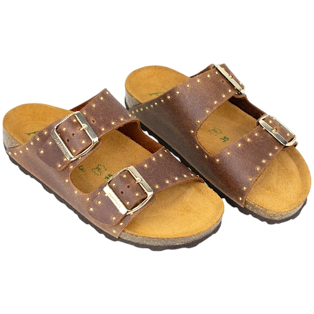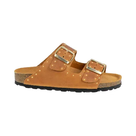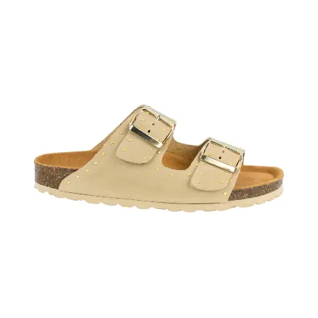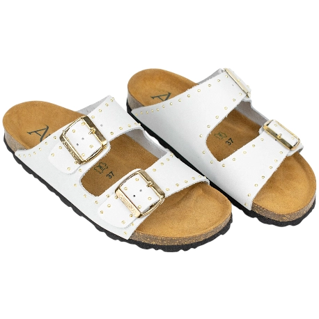 Si buscas unas sandalias de doble hebilla para mujer que combinen carácter y un confort excepcional, de Autenti es para ti. Confeccionadas en España con suave piel engrasada natural y disponibles en elegantes tonos beige, blanco, negro o marrón, estas sandalias bio se distinguen por el detalle especial de sus tachuelas doradas, un toque de luz que realza su diseño y habla de tu estilo.