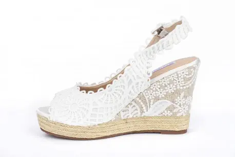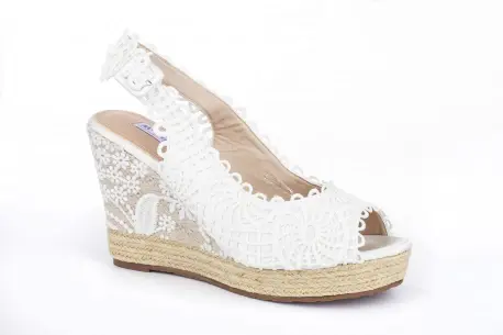 Preciosa cuña de esparto cubierta por un delicado encaje que le da un toque único y femenino. Exterior con un excelente bordado. Son perfectas para eventos, comuniones y bodas. Muy frescas y elegantes.