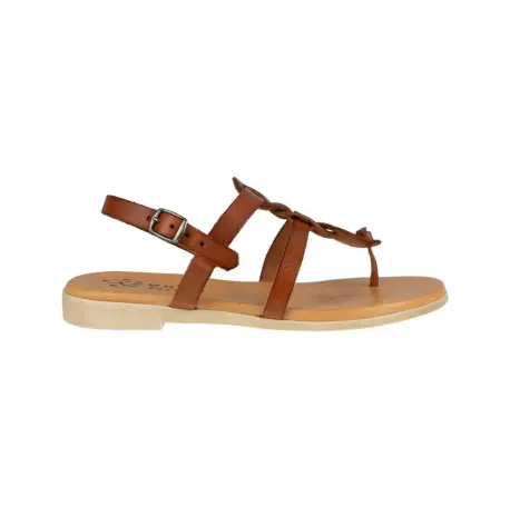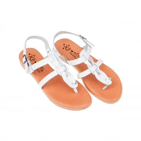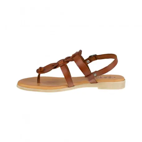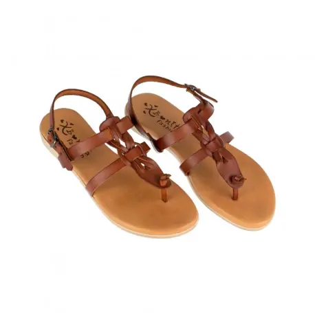 Sandalia tipo esclava entera de piel con diseño semi-trenzado.