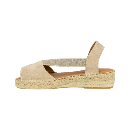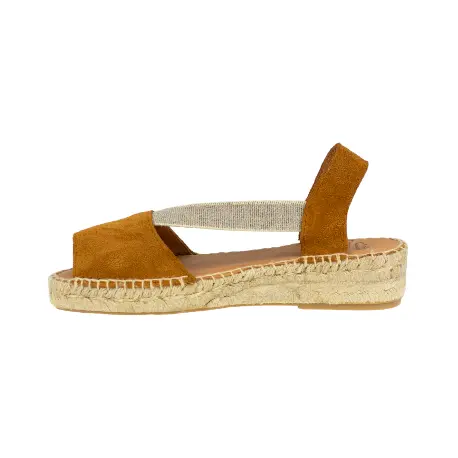 Descubre la elegancia casual y el confort excepcional con las sandalias Carmen García modelo 272A. Fabricadas en España con exquisito serraje, estas sandalias cuentan con una semi cuña de 3.5 cm, elásticos gruesos para un ajuste cómodo, plantilla de piel y suela de goma resistente. La combinación de esparto natural en la planta agrega un toque rústico.