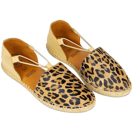 Atrévete a destacar con las sandalias Top3 SR25477, un modelo que combina el estilo natural del esparto con la fuerza del estampado de leopardo. Fabricadas artesanalmente en piel de primera calidad, su diseño con punta y talón cerrados aporta un toque sofisticado y original.