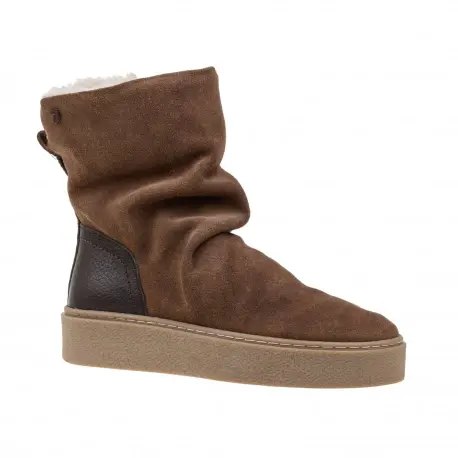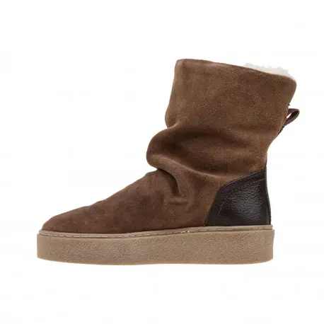 Bota estilo australianas en serraje(piel) marrón con piso tipo casco y forro en borreguito. Plantilla de látex muy cómoda. El básico que necesitas para este invierno.