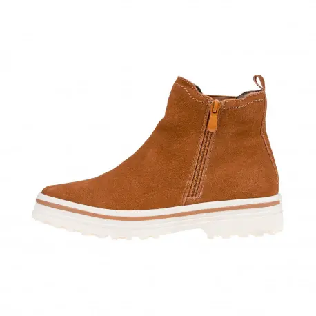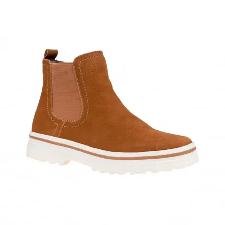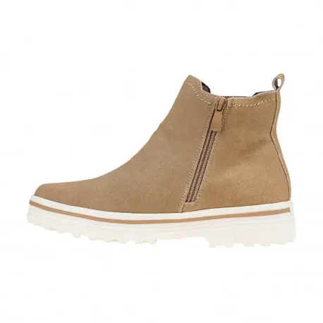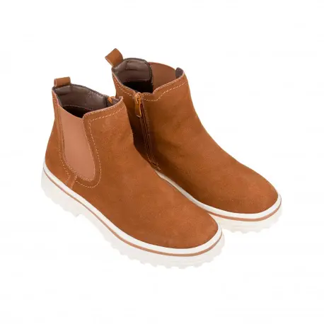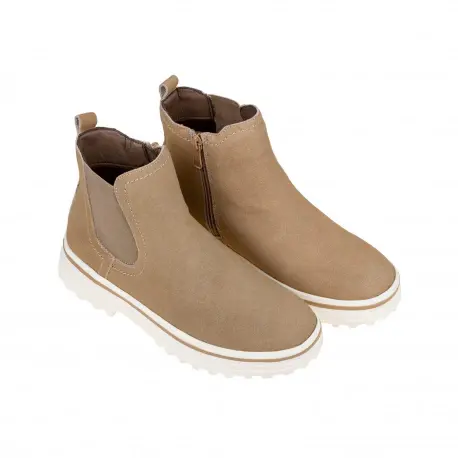 Botín Chelsea de Mujer hecho de Piel (serraje) marca Kelara, muy cómodo con plataforma de 3,5 cm. Cremallera y cierre elástico en el lateral. Suela de goma blanca para contraste, da un toque juvenil.