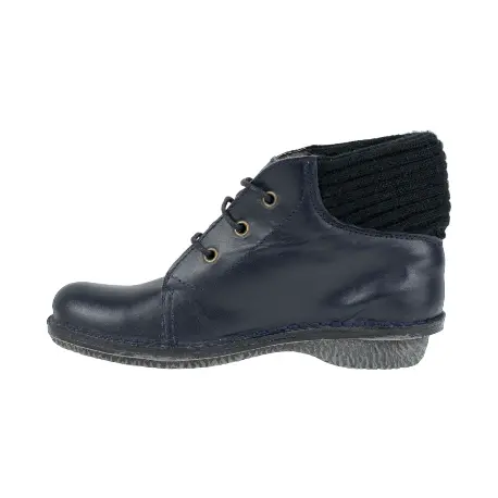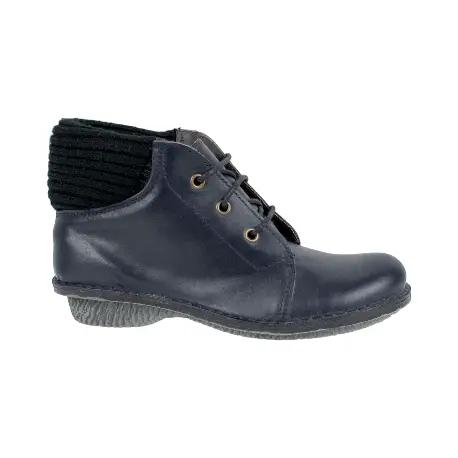 Botín fabricado en piel natural, color azul marino. Cierre de cordones y punta redonda, muy cómodo con forro interior de piel.