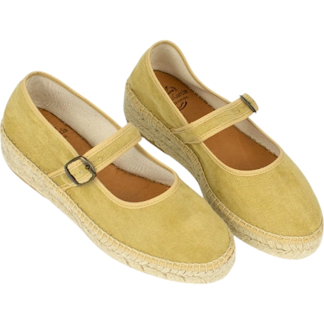 - Estilo Mary Jane con Plataforma de Esparto: Un diseño femenino y coqueto con la tradicional tira sobre el empeine, elevado sobre una plataforma y cuña de esparto de 3.5 centímetros que aporta altura con una excelente estabilidad.
