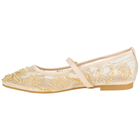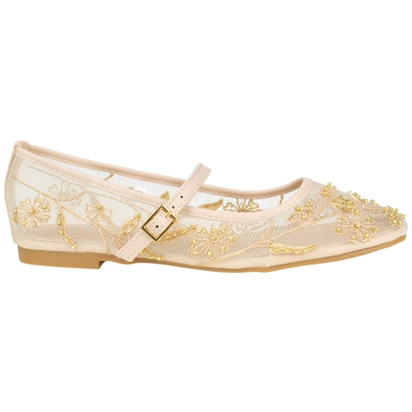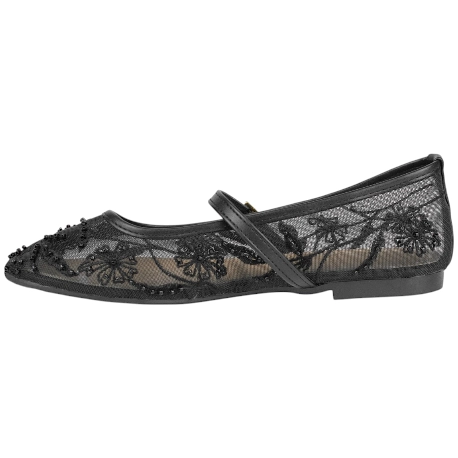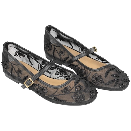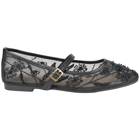 ¿Por qué elegir este modelo y no unas bailarinas más sencillas? Porque estas merceditas ofrecen un impacto visual único. El efecto de la malla transparente con los bordados y la pedrería es sofisticado y original, algo que una bailarina convencional no consigue. Te permiten tener un look de diseño, cómodo y a un precio fantástico.